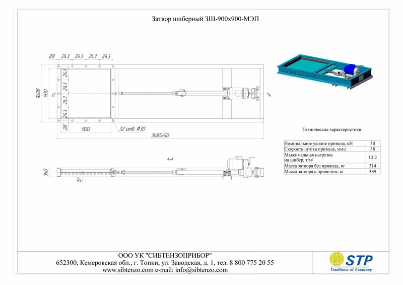 Затвор шиберный 3Ш-900х900-МЭП